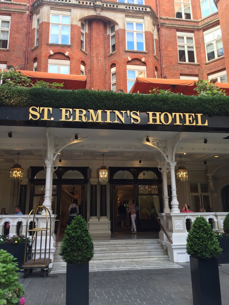 We took in a fish and chips lunch in one of the incredible number of pubs in the city. While young working types congregated inside and out with their pints of beer, we were served very large portions of tasty whitefish while enjoying their banter. We found our pub in our hotel’s neighborhood – the consulate area. St. Ermin’s is a classical spot, even known for its bar that held embassy workers, or were they actually spies? Yes, even Ian Fleming was said to stop by.